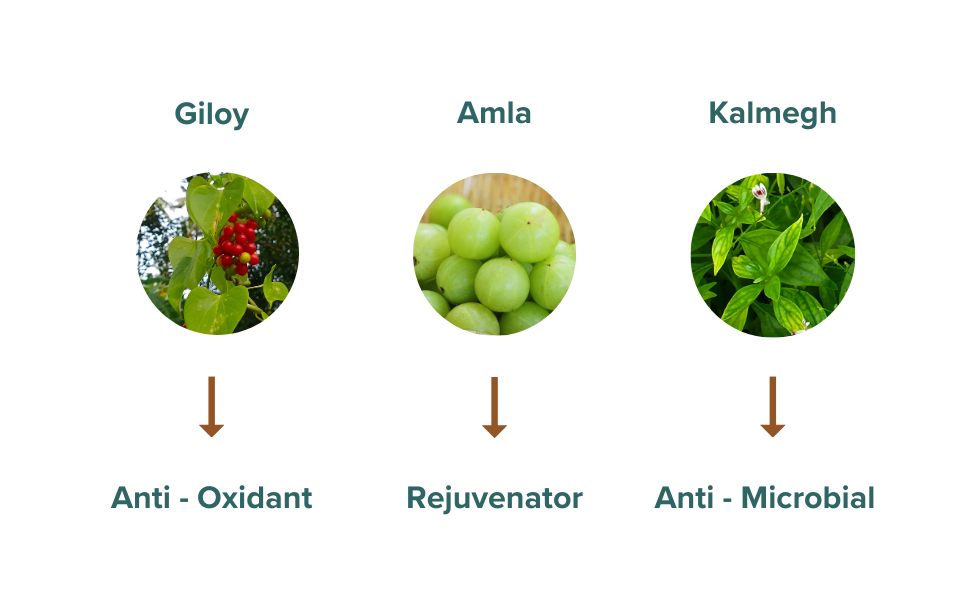 9 magical herbs formulation of Gudduchi (Giloy), with other herbs helps human body to remove toxins, purifies blood, fights bacteria, increases white cells counts. It Supports in rejuvenating the damaged body tissue.