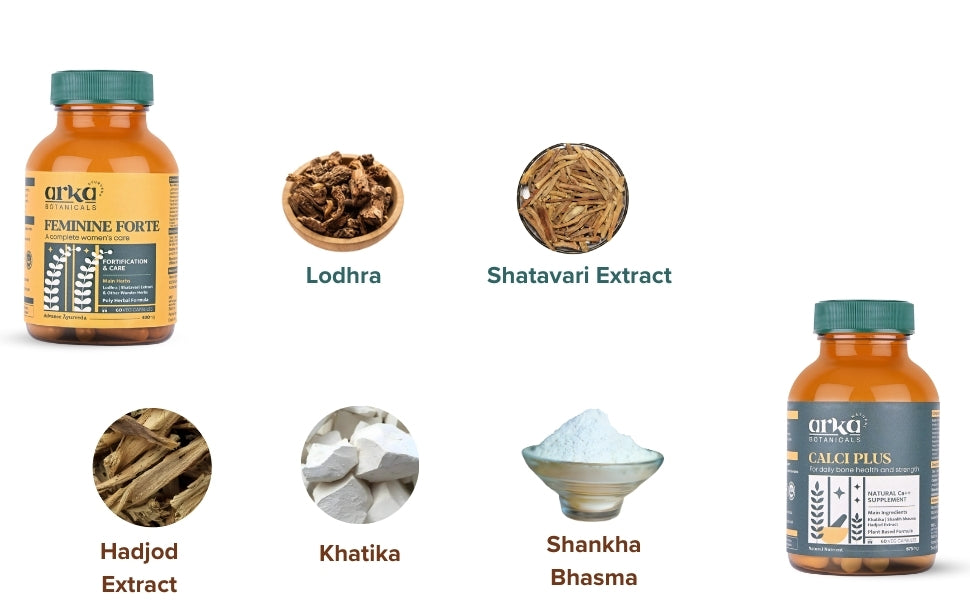 Arka Women's Care | Feminine Forte, Calci+ | Hormonal Balance, Bone Strength & Mental Clarity | Natural Ayurvedic Blend with Lodhra, Shatavari, Khatika, Hadjod | Complete Women's Health Support