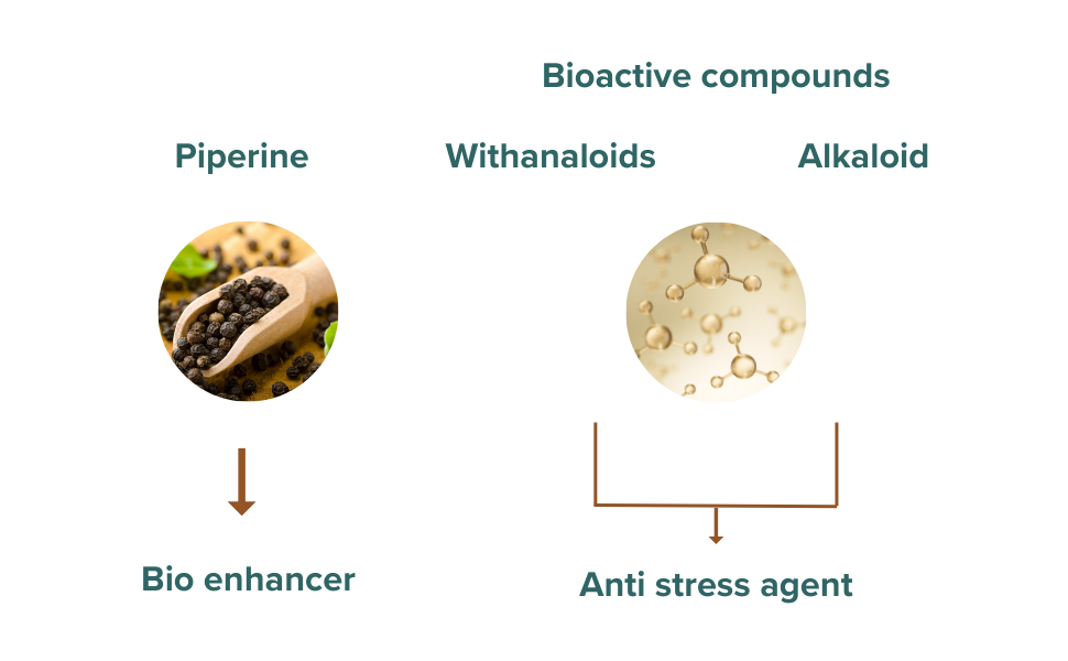 By adding piperine it stimulates the digestive system and making it much easier for cells to absorb the nutrients that Ashwagandha contains.